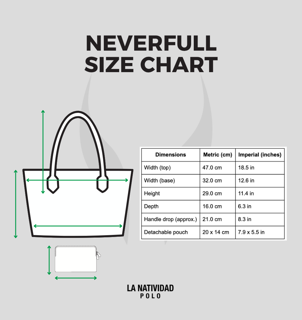A timeless everyday essential. Inspired by iconic silhouettes like the Goyard Saint Louis and the LV Neverfull, our La Natividad tote features an all-over dark green monogram and contrasting La Nati green logos. Comes with a detachable inner pouch for extra practicality and style — whether you're at the stables or in the city.